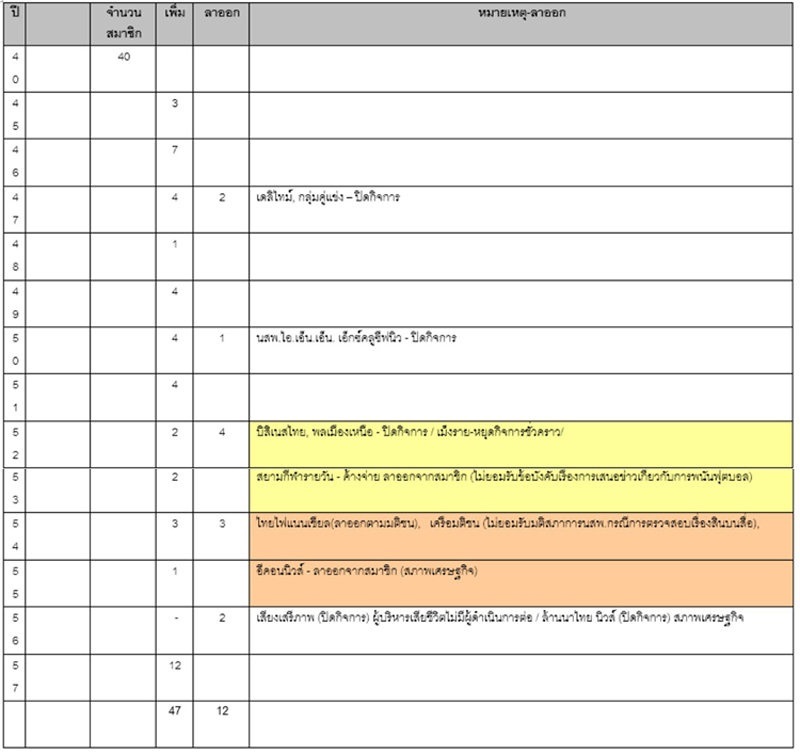 ปี จำนวนสมาชิกเพิ่มลาออกหมายเหตุ-ลาออก