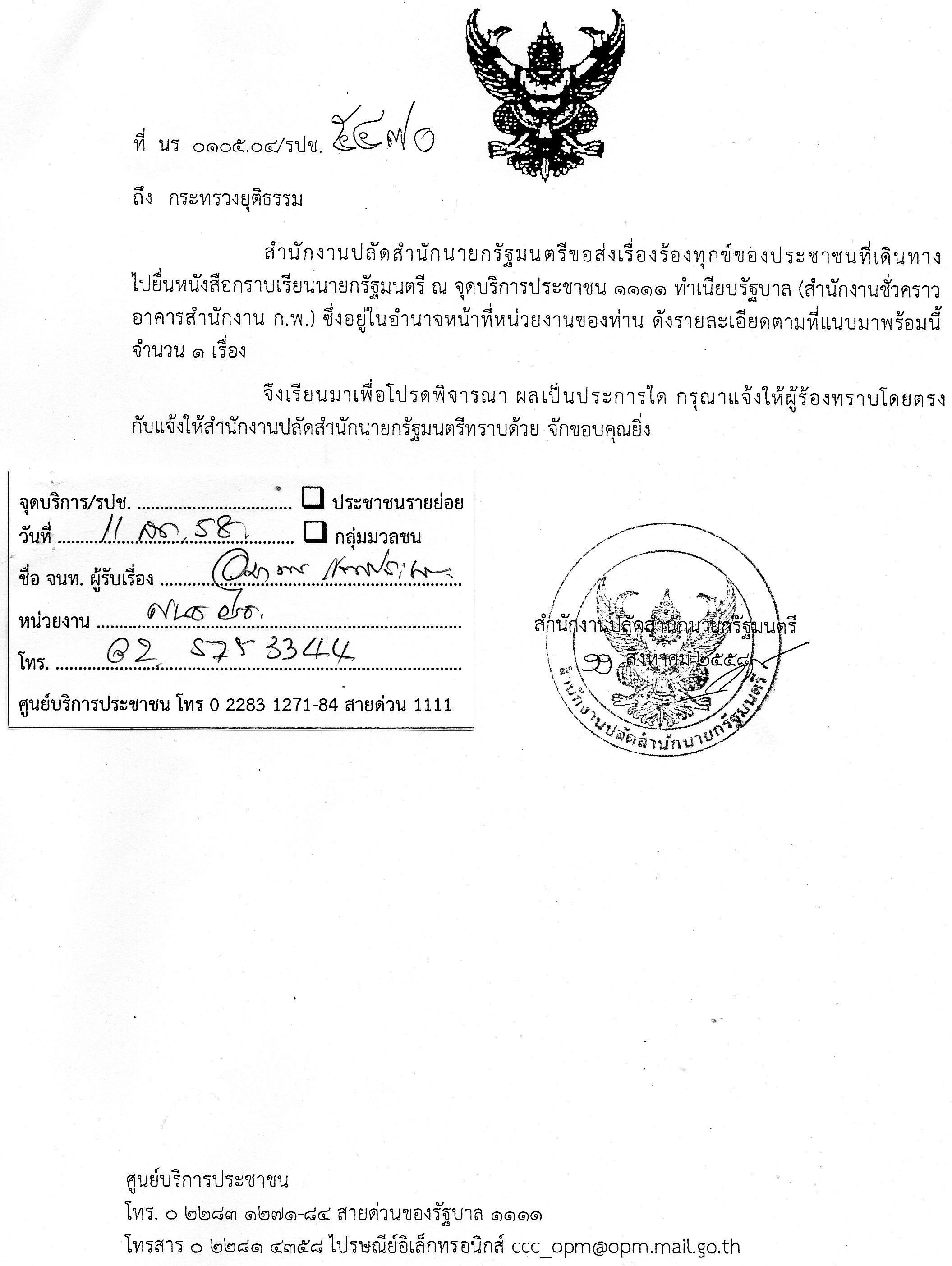 เนื้อหาการร้องเรียนสรุปว่า