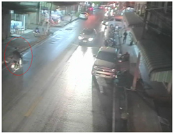 บรรยายภาพ : 1-4 ภาพจากกล้องโทรทัศน์วงจรปิดที่จับภาพผู้ต้องสงสัยเอาไว้ได้