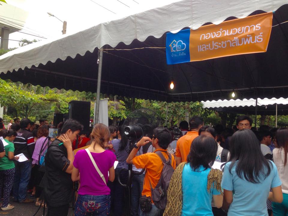 "...ประชาชนที่เดินทางมาถึงแล้ว สามารถลงชื่อในแบบฟอร์มไว้ก่อนได้ โดยทางการเคหะฯ จะสำรองข้อมูลเก็บไว้ในฐานระบบ เมื่อมีความคืบหน้าหรือโครงการต่อไปแล้วเสร็จ ทางการเคหะฯจะให้สิทธิกับคนที่ลงชื่อไว้ก่อน แล้วถึงจะมีการติดต่อกลับไป ทางใดทางหนึ่ง..."