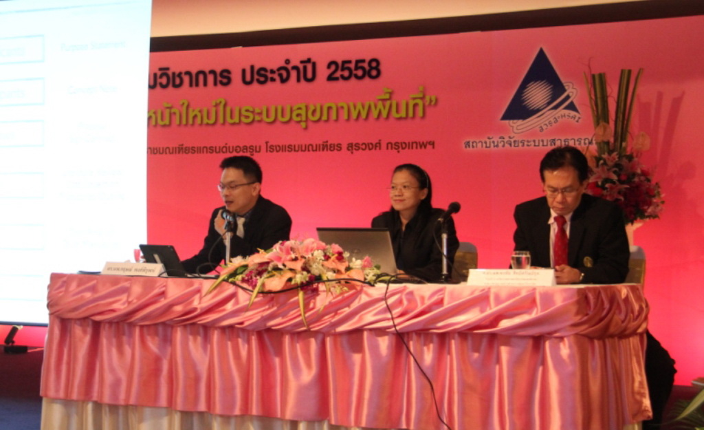 สถาบันวิจัยระบบสาธารณสุข (สวรส.) ร่วมกับคณะแพทยศาสตร์ จุฬาลงกรณ์มหาวิทยาลัย จัดประชุมวิชาการการวิจัยระบบสุขภาพประจำปี 2558 "สร้างนักวิจัยหน้าใหม่ในระบบสุขภาพพื้นที่" ณ โรงแรมมณเฑียร กทม.