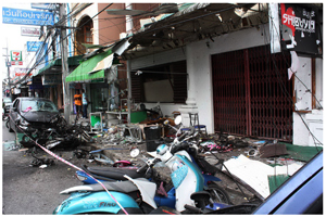 บรรยายภาพ : ความสูญเสียจากเหตุการณ์ระเบิดป่วนยะลาจุดหนึ่งในหลายสิบจุด เมื่อวันที่ 25 ต.ค.2554 (ภาพโดย อะหมัด รามันห์สิริวงศ์)