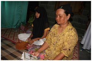 บรรยายภาพ : นางแมะ มอและ มารดาของพลทหารรุสลาม ก้มหน้าดูรูปบุตรชายที่จากไปอย่างไม่มีวันกลับด้วยความเศร้า