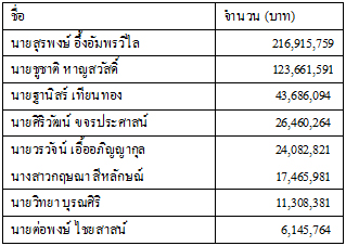 รวม 10 คนอายุ 258 ปี รวมทรัพย์สิน 1,289,367,312 บาท