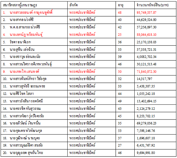 10.นายเทพไท เสนพงศ์ พรรคประชาธิปัตย์ อายุ 50 ปี จำนวนทรัพย์สิน 71,840,872 บาท