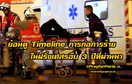ย้อนดู Timeline การก่อการร้ายในฝรั่งเศสรอบ 3 ปีที่ผ่านมาตั้งแต่ปี 2012 - 2015 จำนวน 8 ครั้ง ก่อนเกิดเหตุ "ปารีสเลือด"13 พ.ย.58 ระบุยอดผู้เสียชีวิตล่าสุด 160 ราย บาดเจ็บเพียบ
