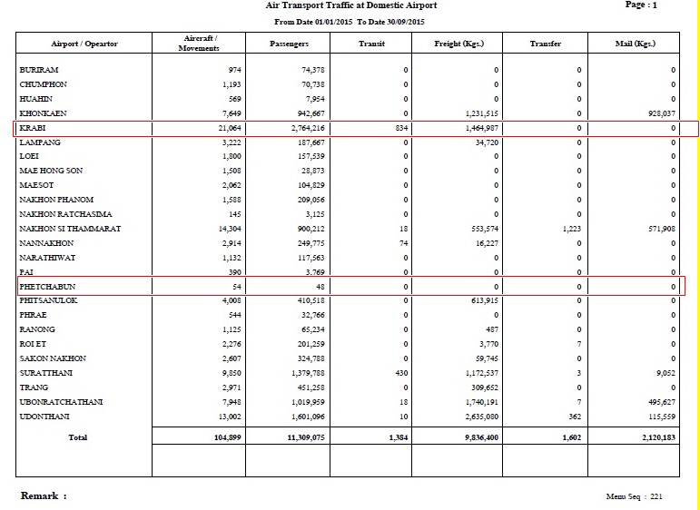 ทั้งนี้ เมื่อไปเปิดดูสถิติข้อมูลการขนส่งทางอากาศภายในประเทศ ประจำปี 2558 ก็จะพบว่า แม้หลายสนามบินจะมีเครื่องบินบินมาลง แต่อัตราการขึ้นลงของเครื่องบินก็น้อยเที่ยว แทบไม่คุ้มค่า