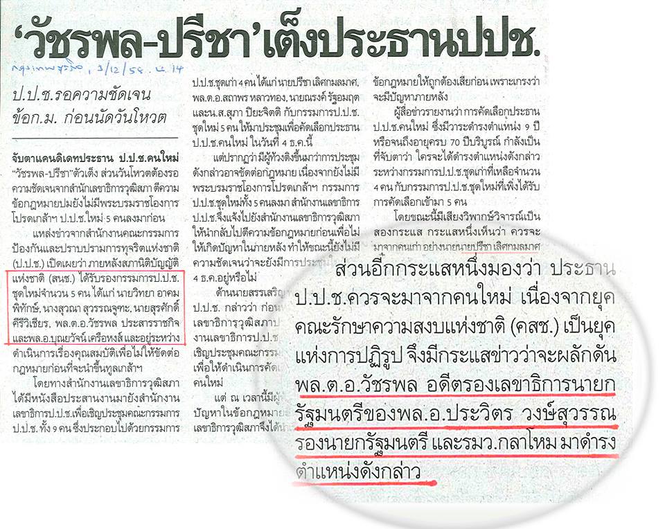 "..กรรมการ ป.ป.ช. ทั้ง 9 ท่าน เป็นความหวังของประเทศ การเลือกประธานคนใหม่ของ ป.ป.ช. ต้องเป็นไปอย่างสง่างามสมศักดิ์ศรี การมีข่าวแบบนี้ออกมาจึงเป็นเรื่องอันตรายสำหรับ ป.ป.ช..."