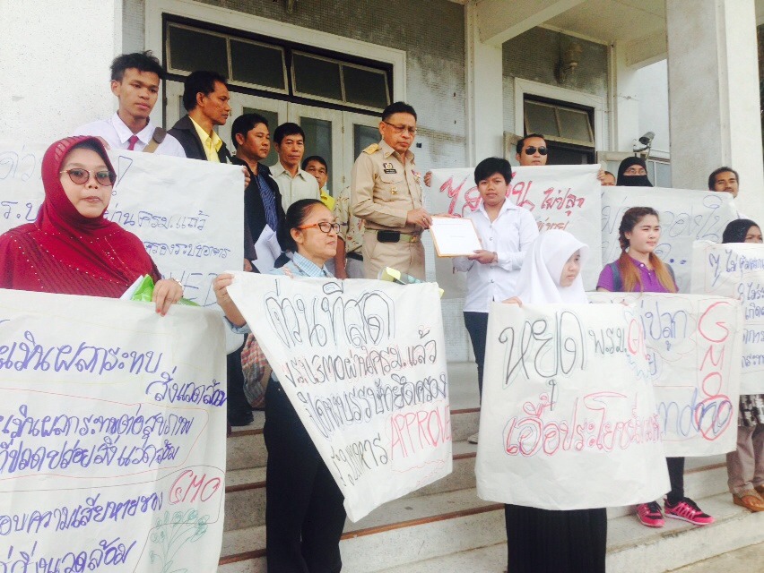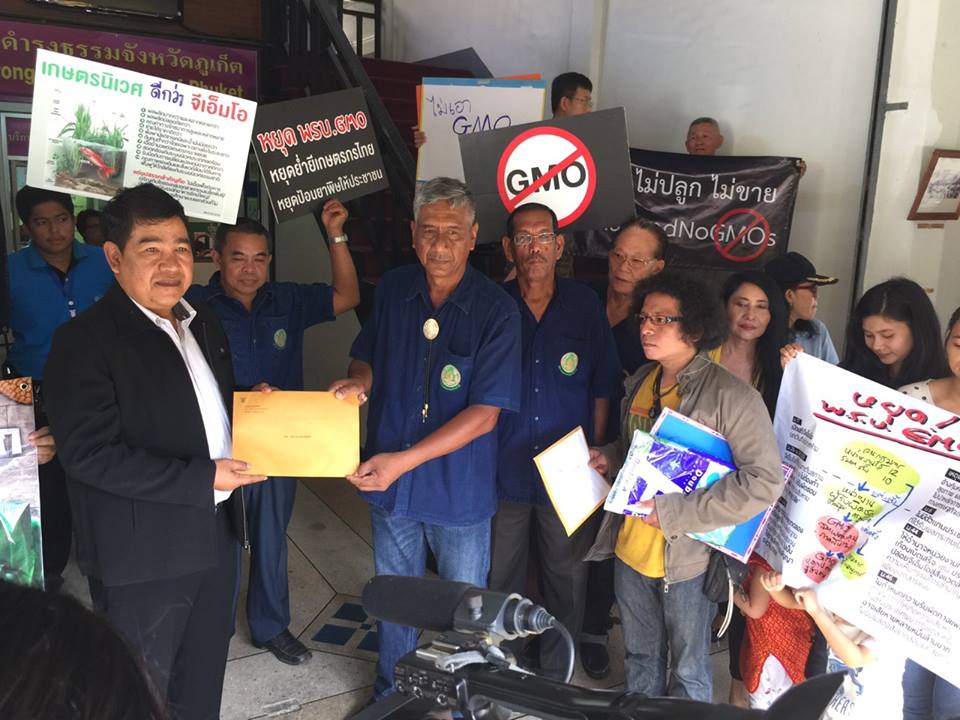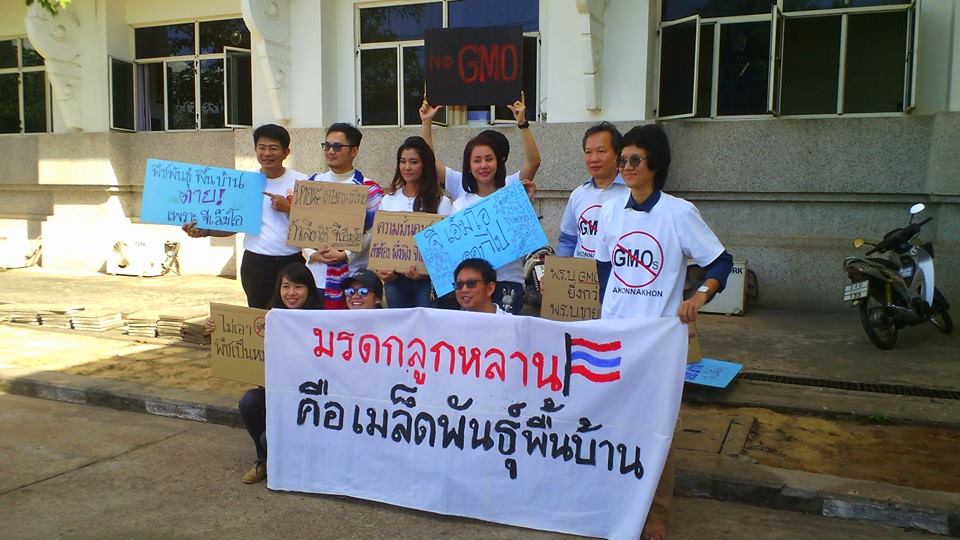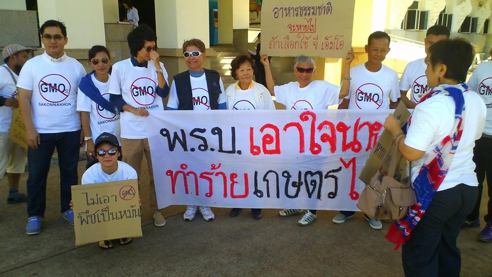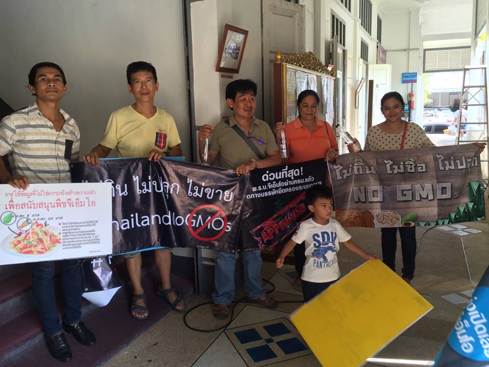 วันที่ 9 ธันวาคม 2558 ที่ทำเนียบรัฐบาล เครือข่ายภาคประชาชนและผู้ประกอบการภาคเกษตรและอาหารกว่า 122 เครือข่าย ร่วมทำกิจกรรมรณรงค์เชิงสัญลักษณ์ด้วยการนำหุ่นไล่กา 77 ตัว แทนจำนวนจังหวัดในประเทศไทย และส่งข้อความว่า “ค้าน พ.ร.บ.จีเอ็มโอ NO GMOs” และ “คนไทยไม่เอาจีเอ็มโอ” พร้อมยื่นหนังสือให้ชะลอร่างพระราชบัญญัติ (พ.ร.บ.) ความปลอดภัยทางชีวภาพ พ.ศ. ... และขอให้แต่งตั้งคณะกรรมการปรับปรุงร่างกฎหมายที่มีผู้แทนของภาคประชาชน และผู้ประกอบการที่ได้รับผลกระทบร่วมเป็นคณะกรรมการต่อพล.อ.ประยุทธ์ จันทร์โอชา นายกรัฐมนตรี โดยมี พล.ต.สรรเสริญ แก้วกำเนิด โฆษกประจำสำนักนายกรัฐมนตรี เป็นผู้รับมอบ