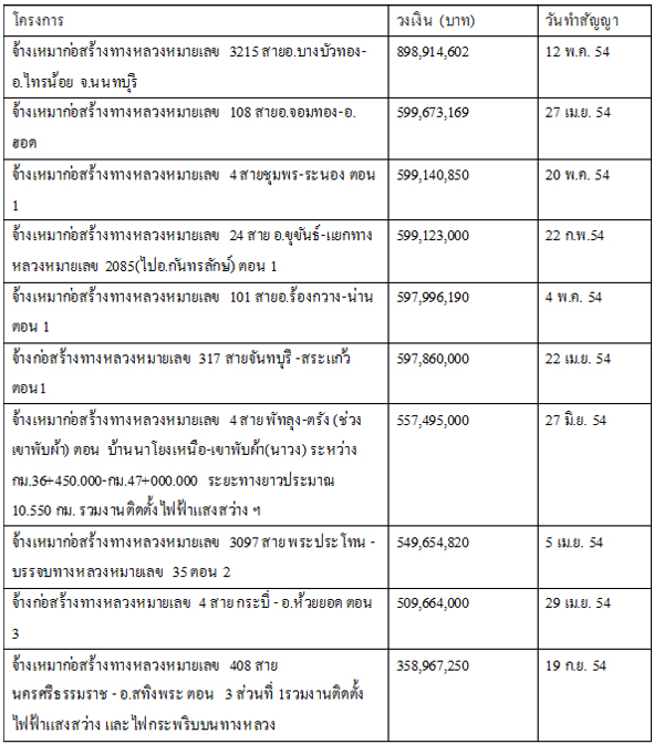 โครงการก่อสร้างของกรมทางหลวงชนบท ปี 2554