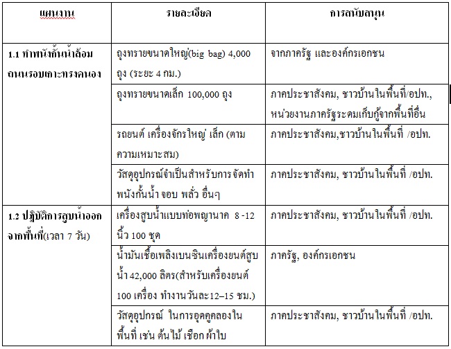 เกาะทรงคนอง สภาพน้ำท่วม ลักษณะกายภาพทั้งหมดเพื่อจัดทำฐานข้อมูล แผนที่ เพื่อใช้กำหนดรูปแบบการทำพนังกั้นน้ำที่เหมาะสม, นำข้อมูลมาวางแผนปฏิบัติการ กำหนดรายละเอียดการทำงานระดับพื้นที่ แบ่งบทบาทคณะทำงานทั้งหมดให้ชัดเจน