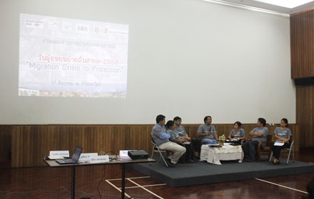 เมื่อวันที่ 17 ธันวาคม 2558 เครือข่ายองค์กรที่ทำงานด้านประชากรข้ามชาติ (Migrant Working Group) จัดแถลงข่าว รายงานสถานการณ์เนื่องในวันผู้อพยพย้ายถิ่นสากล 2558 “Migrant Crisis to Protection” ณ บ้านเซเวียร์ อนุเสาวรีย์ชัยสมรภูมิ