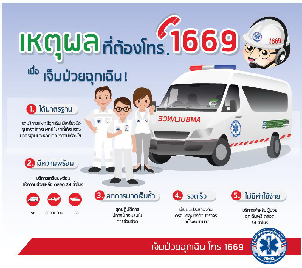 1. เมื่อพบเหตุเจ็บป่วยฉุกเฉินให้ตั้งสติและโทรแจ้งสายด่วน 1669