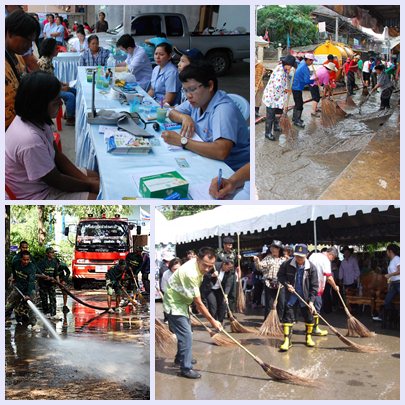 2.การส่งเสริมสุขภาพ ป้องกันและควบคุมโรค โดยเฝ้าระวัง ป้องกัน และควบคุมโรคระบาดในพื้นที่ และศูนย์พักพิง สอบสวน ควบคุมโรคตามความจำเป็น ควบคุมแมลงพาหะนำโรคทั้งในพื้นที่น้ำท่วมและศูนย์พักพิง สนับสนุนวัสดุอุปกรณ์และเวชภัณฑ์ในการควบคุมป้องกันโรคให้แก่ศูนย์พักพิง สนับสนุนผลิตภัณฑ์ในการป้องกันการแพร่กระจายของเชื้อก่อโรคและแมลงนำโรค จัดทำสื่อให้ความรู้ในการดูแลสุขภาพในสภาวะน้ำท่วม