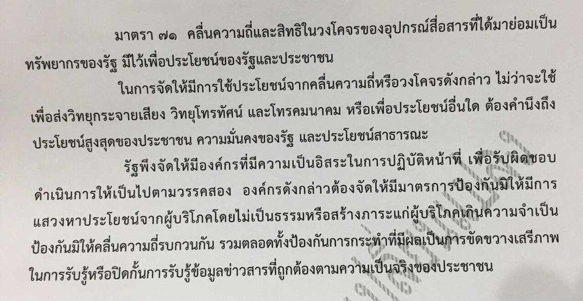 แต่ร่างรัฐธรรมนูญฉบับนี้ จากความรู้อันไม่มากนักของผม อย่างน้อยเฉพาะมาตราว่าด้วยคลื่นความถี่นี้ หาได้เป็นเช่นนั้นไม่