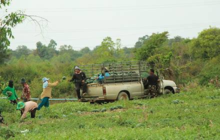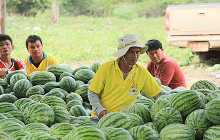 (เกษตรกรกำลังเก็บเกี่ยวผลผลิตเเตงโม)