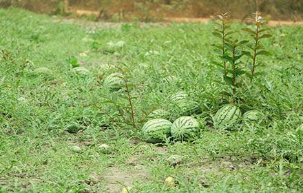 (เเตงโมไร้เมล็ดในเเปลงปลูก)