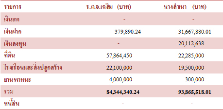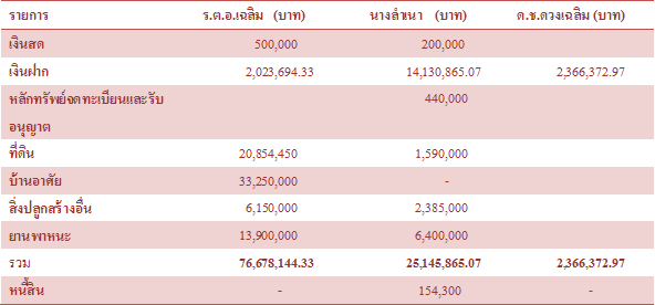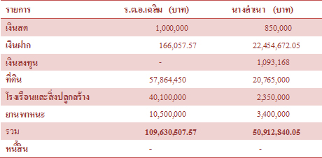 นางลำเนา คู่สมรส มี 50,912,840.05 บาท ประกอบด้วย