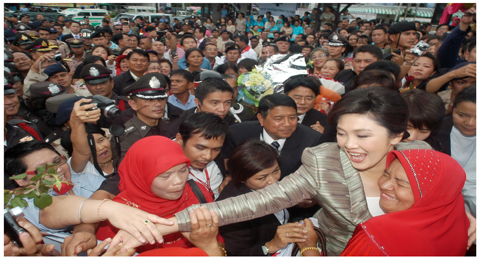 1 น.ส.ยิ่งลักษณ์ ชินวัตร นายกรัฐมนตรี เดินทางลงพื้นที่ภาคใต้เป็นครั้งแรก แต่ไปแค่ อ.หาดใหญ่ จ.สงขลา ไม่ได้เลยไปที่สามจังหวัดชายแดนภาคใต้ (ภาพโดย สุเมธ ปานเพชร)
