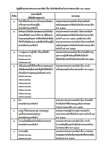 ข้อ ๓ ให้สินค้าตามบัญชีท้ายประกาศนี้เป็นสินค้าต้องห้ามนําผ่านราชอาณาจักร