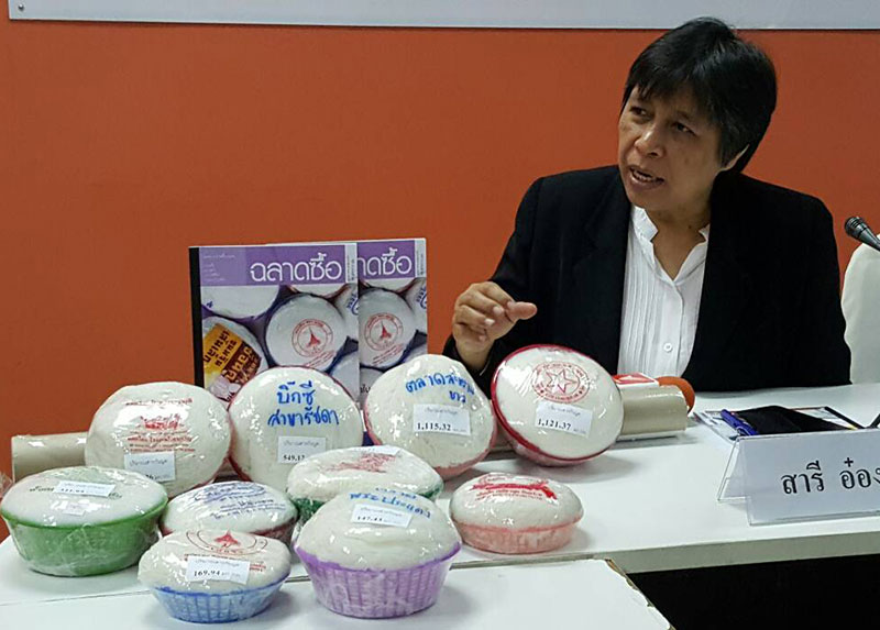 ด้านนางสาวสารี อ๋องสมหวัง เลขาธิการมูลนิธิเพื่อผู้บริโภค กล่าวเพิ่มเติมว่า ถึงแม้ขนมจีนจะเป็นอาหารกลุ่มทั่วไปที่ไม่ต้องมีฉลาก แต่จากผลการทดสอบจะเห็นว่า ขนมจีนมีการใช้ยากันบูดร้อยเปอร์เซ็นต์ เพื่อคุ้มครองสิทธิผู้บริโภคที่จะได้รับข้อมูล ข้อเท็จจริงในการเลือกซื้อสินค้าซึ่งเป็นสิทธิขั้นพื้นฐาน เสนอให้ อย.เพิ่มมาตรการฉลากหากมีใช้วัตถุกันเสีย รวมทั้งสนับสนุนและตรวจสอบโรงงานผลิตขนมจีน พร้อมรายงานผลตรวจสอบแก่สาธารณะ และขอเรียกร้องให้ อย. เร่งรัด พัฒนาระบบฐานข้อมูล รายงานผลการตรวจสอบอาหารต่างๆ ที่เคยตรวจมาแล้วแก่สาธารณะ เพื่อให้ประเทศไทยมีระบบรายงานความไม่ปลอดภัยด้านอาหาร เช่นที่สหภาพยุโรปและประเทศเพื่อนบ้านของเรา คือ มาเลเซีย มีใช้แล้ว .