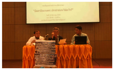 บรรยายภาพ : 1-3 บรรยากาศเวทีเสวนาสาธารณะ "ปัตตานีมหานคร : ประชาชนจะได้อะไร?" (ภาพโดย อับดุลเลาะ หวังหนิ)