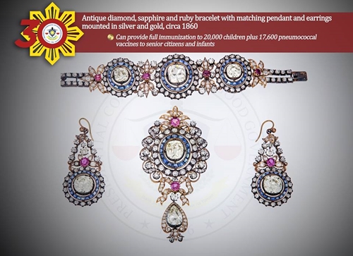 ต่างหูเพชร- สร้อยข้อมือประดับด้วยเพชร ไพลิน ทับทิม มูลค่าทั้งชุดสามารถฉีดวัคซีนให้เด็กได้ไม่ต่ำกว่า 2 หมื่นคน