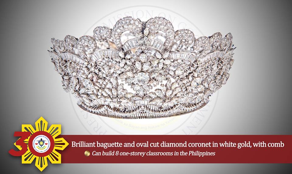 ความน่าสนใจ PCGG นอกจากจะเผยแพร่ภาพเครื่องประเด็บเพชรของอดีตสตรีหมายเลขหนึ่ง "อิเมลดา มาร์กอส" แล้ว ยังมีการให้คำอธิบายแนบท้ายด้วยการเปรียบทียบให้เห็นมูลค่าเครื่องประดับแต่ละชิ้น เพชร ทอง มงกฎเพชร ต่างหู เหล่านี้ หากแปลงเป็นเงินสามารถนำเงินเหล่านั้นมาพัฒนาประเทศด้านใดได้บ้าง ทั้งด้านการศึกษา สุขภาพ เกษตรกรรม และแก้ความยากจน