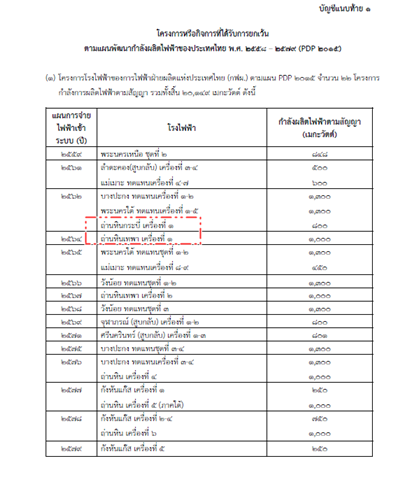 ๑. โครงการภายใต้แผนพัฒนากำลังผลิตไฟฟ้าของประเทศไทย พ.ศ. ๒๕๕๘ - ๒๕๗๙ (PDP ๒๐๑๕)