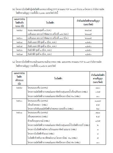 ๑.๑ โครงการโรงไฟฟ้าของการไฟฟ้าฝ่ายผลิตแห่งประเทศไทย (กฟผ.) ตามแผน PDP ๒๐๑๕ จำนวน ๒๒ โครงการ กำลังการผลิตไฟฟ้าตามสัญญา รวมทั้งสิ้น ๒๐,๑๔๙ เมกะวัตต์