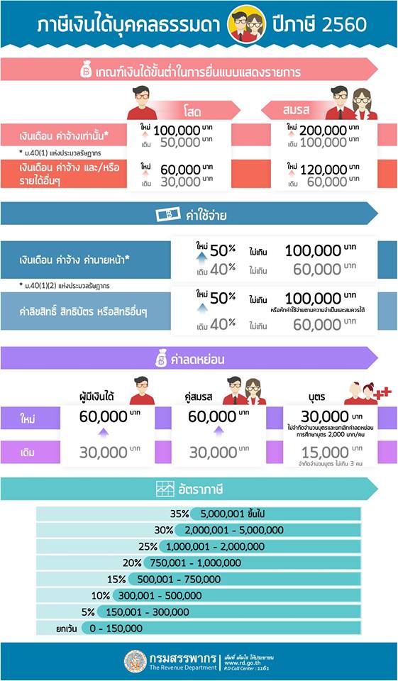 ขณะเดียวกันเเฟนเพจเฟซบุ๊กกรมสรรพากรได้เผยเเพร่อินโฟว์กราฟฟิกอธิบายการปรับปรุงภาษีเงินได้บุคคลธรรมดา เพื่อสร้างความเข้าใจเเก่ประชาชนมากขึ้น