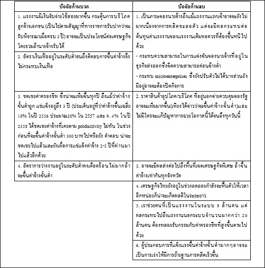 ข้อควรพิจารณาในการขึ้นค่าจ้างขั้นต่ำในปี 2559