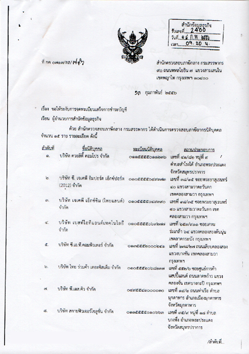 ครั้งแรก เมื่อ 13 ก.พ.2556 ครั้งที่สอง 6 ส.ค.2556 และครั้งที่สาม 12 ก.พ.2557 ซึ่งเป็นคำสั่งคราวเดียวกับการขอให้ระงับรับจดทะเบียนเสร็จการชำระบัญชีนิติบุคคลข้างต้น