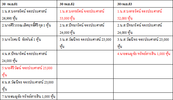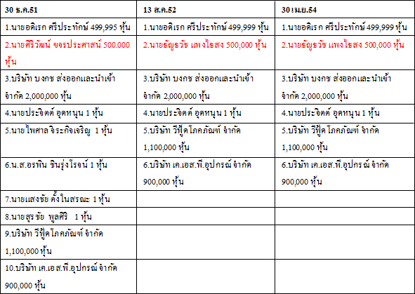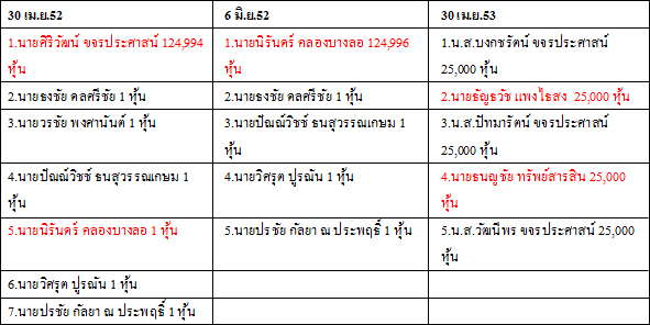 ข้อมูลที่น่าสนใจบุคคลที่ได้รับโอนหุ้น 1 คนคือ พี่สาวนายศิริวัฒน์