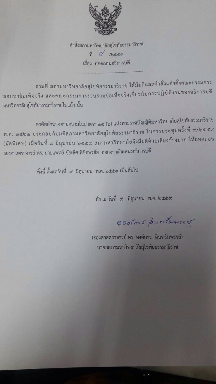 ข่าวที่เกี่ยวข้อง:สภา มสธ.ชี้ชะตาเลิกจ้างอธิการบดี 9 มิ.ย.59 ปม เรียน วปอ.เวลางาน