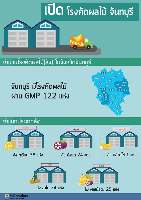 มีข้อมูลจากศูนย์วิจัยพืชสวนจังหวัดจันทบุรี ขณะนี้มีโรงคัดบรรจุผลไม้ (ล้ง) ที่ได้รับการรับรองคุณภาพและมาตรฐาน GMP แล้ว ในจังหวัดจันทบุรีทั้งสิ้น 122 โรง ในจำนวนนี้เป็นล้งของพ่อค้าชาวจีนเกือบครึ่งหนึ่งของล้งทั้งหมด
