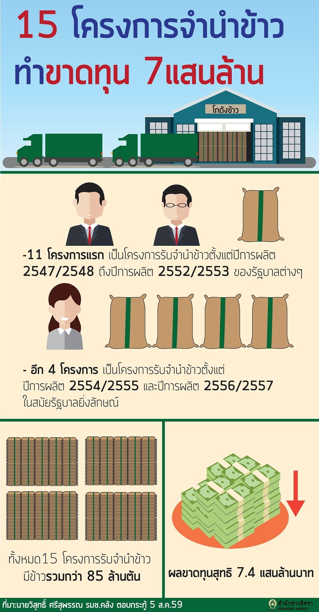 15 โครงการจำนำข้าว ทำขาดทุน กว่า 7 แสนล้าน