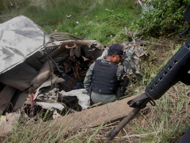 The powerful explosion completely wrecked the truck which plunged into the roadside ditch and killed the unit commander, 25-year old Lt Direksin Rattanasin and the driver, 26-year old Sgt Yutthana Jampamee whose body was found about 20 metres from the truck wreckage.