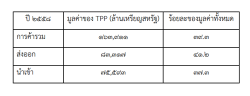 1) ขณะนี้การศึกษาผลได้ผลเสียจาก TPP ยังไม่ชัดเจน