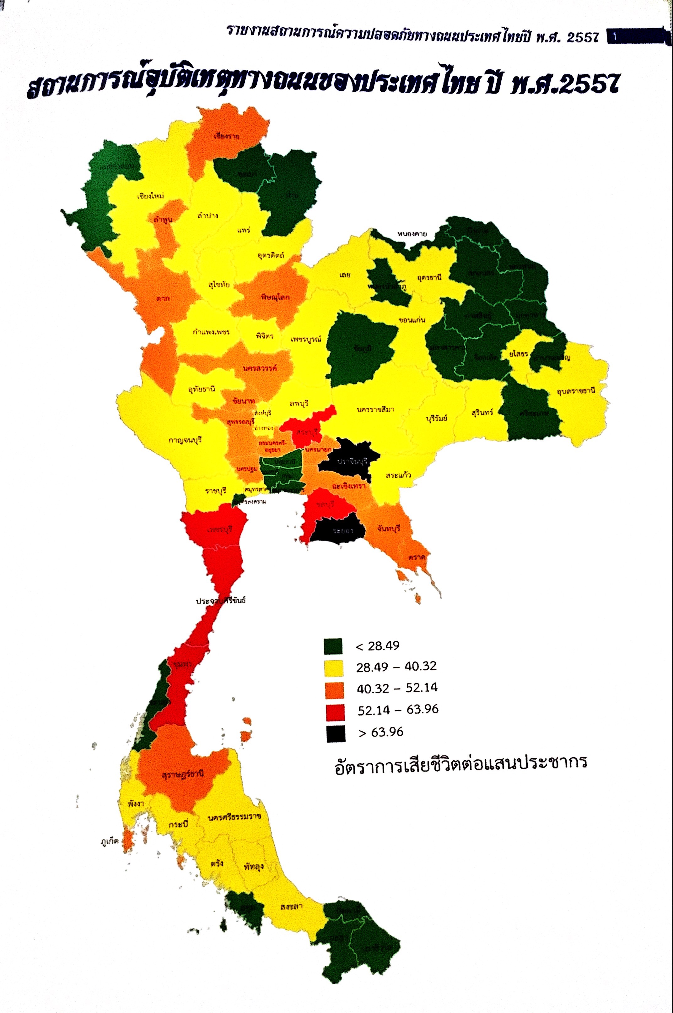 "ในประเทศไทยควรรวบรวมข้อมูลการตายทั้ง 3 ฐาน เพื่อข้อมูลที่เป็นจริงและเป็นข้อมูลที่เป็นจริง ซึ่งจากสถานการณ์รายจังหวัดพบว่า จังหวัดที่มีอัตราการเสียชีวิตต่ำสุดคือ กรุงเทพมหานคร 13.60 รายต่อแสนประชากร ตามด้วย สตูล ยะลา ปัตตานี โดยจังหวัดที่มีอัตราผู้เสียชีวิตสูงสุดคือ ระยอง 74.73 รายต่อแสนประชากร ตามมาด้วย ปราจีนบุรี ชลบุรี ประจวบคีรีขันธ์ โดยจังหวัดที่มีแหล่งท่องเที่ยวจะมีอัตราการเสียชีวิตที่สูงกว่า