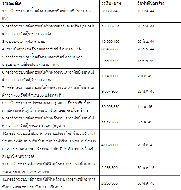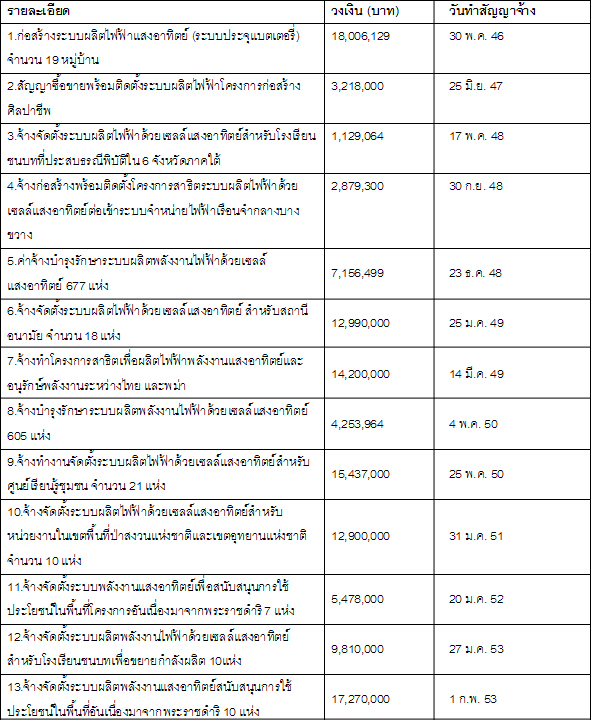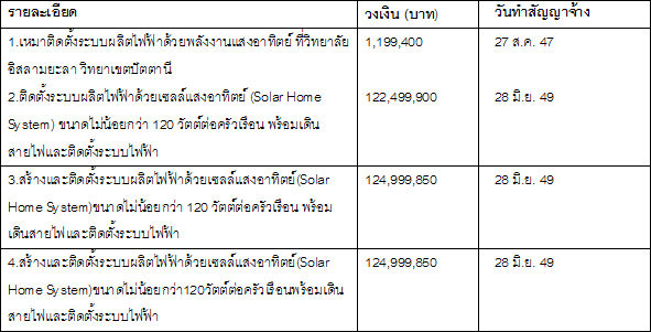 รายการว่าจ้าง บมจ.โซลาร์ตรอน ในกรมพัฒนาพลังงานทดแทนและอนุรักษ์พลังงาน