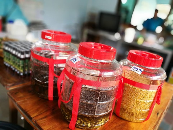 ส่วนวัตถุดิบสมุนไพร ทั้งไพรดำ ไพรเหลือง ขมิ้น อัญชัญ มะรุม ข่า ตะไคร้ ฯลฯ มีทั้งปลูกเองบนพื้นที่ 4 ไร่ และรับซื้อจากคนในชุมชนอีกส่วนหนึ่ง