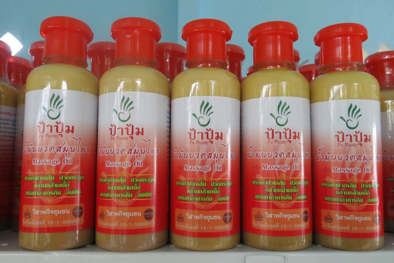 "การที่เรานวดใครสักคนให้ได้ผลดีมากกว่าการบีบนวดธรรมดา เราคิดว่าจะต้องมียาเข้ามามีส่วนด้วย ป้าปุ้มจึงได้ไปเรียนรู้เรื่องสมุนไพรกับน้องสามีที่จังหวัดนครศรีธรรมราช ยาแก้อัมพฤต อัมพาต รวมทั้งเข้าร่วมกับสถาบันและหน่วยงานต่างๆ เพื่อพัฒนาองค์ความรู้เกี่ยวกับสมุนไพร เพื่อมาใช้พัฒนาผลิตภัณฑ์และบริการ" ป้าปุ้ม เล่าที่มา ก่อนคิดค้นสูตรน้ำมันนวดสมุนไพร “ป้าปุ้ม” ที่ปัจจุบันมียอดขายไม่ต่ำกว่า 2 พันขวดต่อเดือน และกำลังขยายต่อยอดไปสู่ผลิตภัณฑ์ใหม่ๆ อย่างต่อเนื่อง