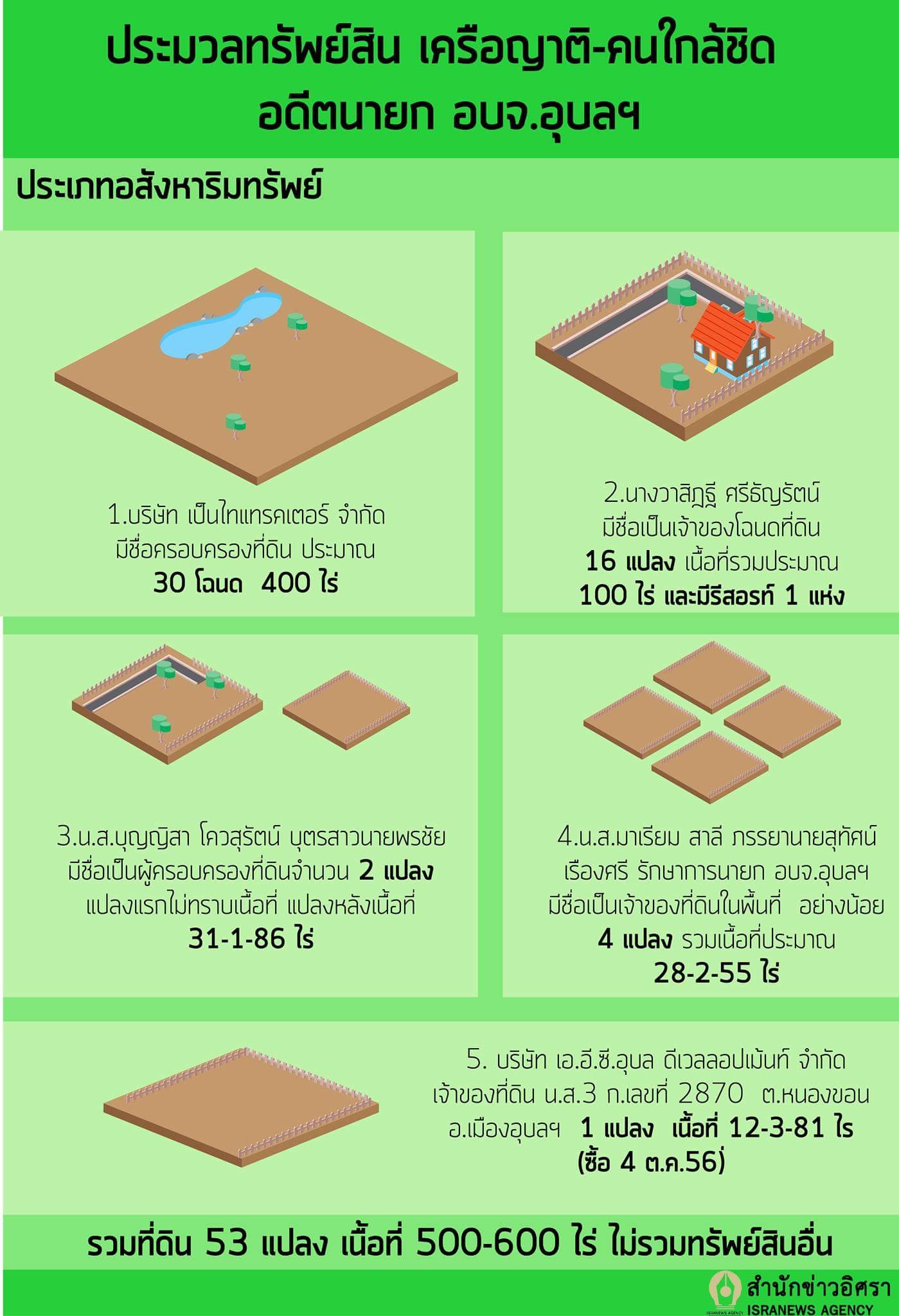 INFO : ประมวลทรัพย์สิน เครือญาติ-คนใกล้ชิด อดีตนายก อบจ.อุบลฯ