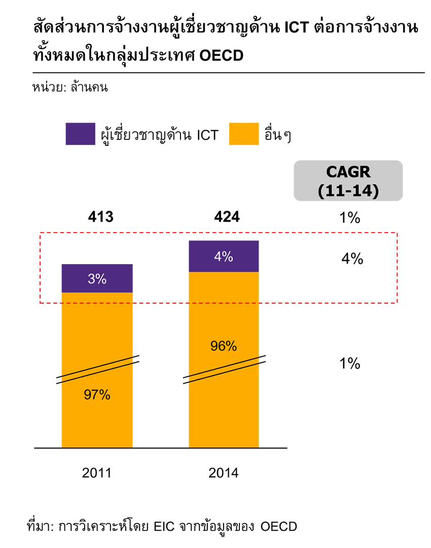 แรงงานที่มีทักษะสูง เช่น ผู้เชี่ยวชาญด้าน ICT จะทวีความสำคัญมากยิ่งขึ้นในโลกยุคดิจิทัล