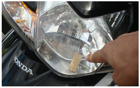 บรรยายภาพ : เจ้าหน้าที่กำลังตรวจร่องรอยบนรถจักรยานยนต์ของ นายมะแอ ตาสาเม๊าะ หลังถูกยิงเสียชีวิตในพื้นที่ อ.หนองจิก จ.ปัตตานี