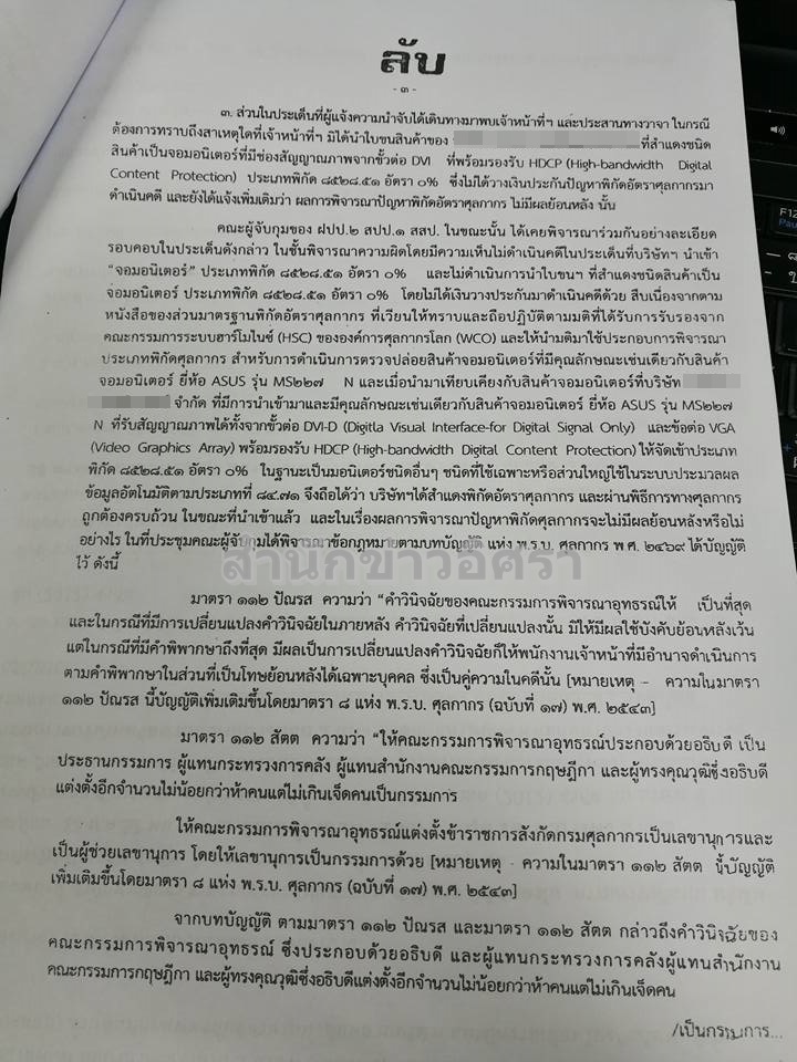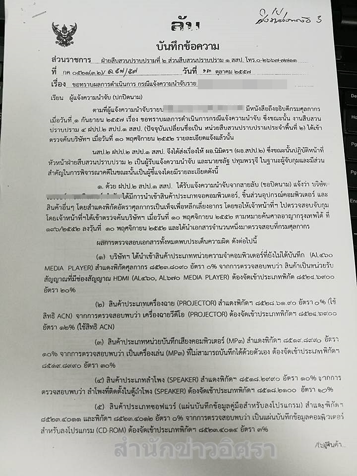 ผู้แจ้งความนำจับฯ ร้องอิศรา กรมศุลฯ ยุติเรื่องเอกชน สำแดงเท็จ นำเข้าจอมอนิเตอร์ ปี 52 จำนวน 80 ใบขนฯ เป็นเหตุอากรขาดกว่า 120 ล้าน