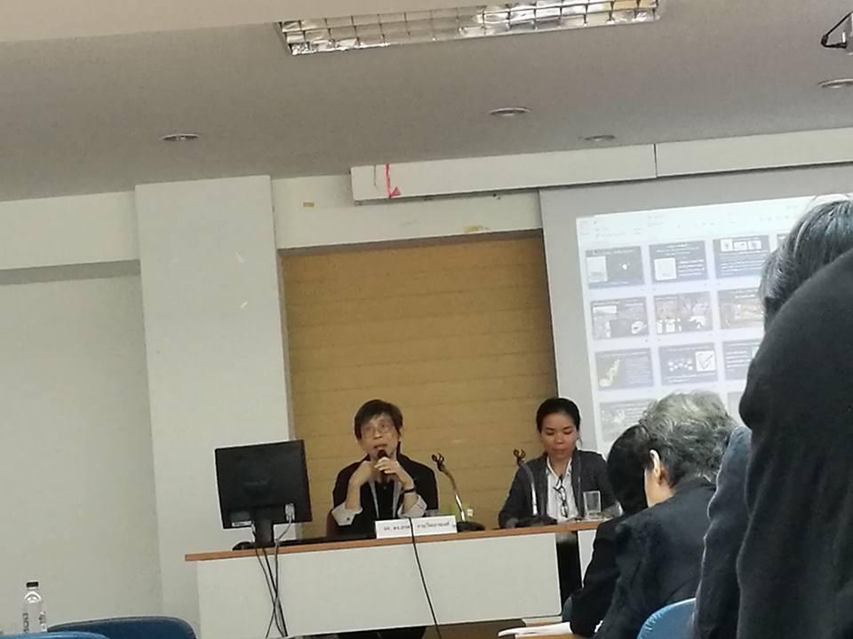 รองศาสตราจารย์ ดร.อรศรี งามวิทยาพงศ์ เปิดคลิปวีดีโอ วัดบันดาลใจ เพื่อสร้างความเข้าใจก่อนนำเสนอผลงานวิจัยหัวข้อ “ฟื้นวัด คืนเมือง ฝันเฟื่องหรือเปล่า” ในเวทีการสัมมนานำเสนอผลงานวิจัย วิทยาลัยพัฒนศาสตร์ ป๋วย อึ๊งภากรณ์ เรื่อง “พัฒนศาสตร์กับการอยู่ร่วมกันในสังคมที่ (ไม่) เป็นธรรม” ณ ห้องประชุมบุญชู โรจนเสถียร อาคารอเนกประสงค์ 1 มหาวิทยาลัยธรรมศาสตร์ ท่าพระจันทร์