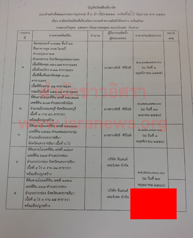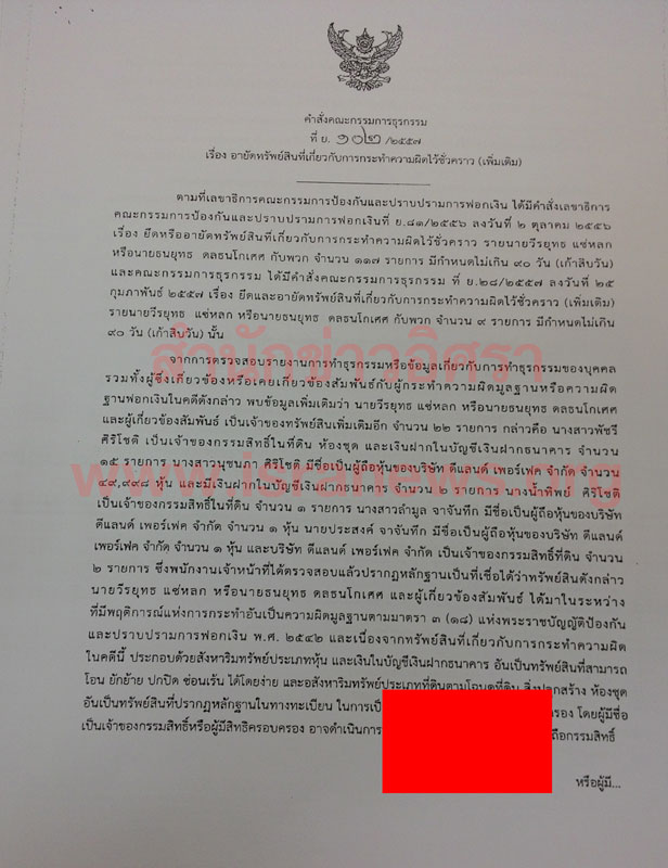 เปิดคำสั่ง ป.ป.ง.อายัดทรัพย์สิน 22 รายการ ‘พัชรี’ นักธุรกิจสาว พันคดีโกงภาษีมูลค่าเพิ่ม 4.3 พันล.ก๊วน‘วีรยุทธ’ ที่ดิน หุ้น เงินฝาก 118.8 ล.ก่อนเพิกถอนใน 2 เดือนเศษ ถูก ป.ป.ช.สอบต่อโยงคดีบิ๊ก ขรก.รวยผิดปกติหรือไม่