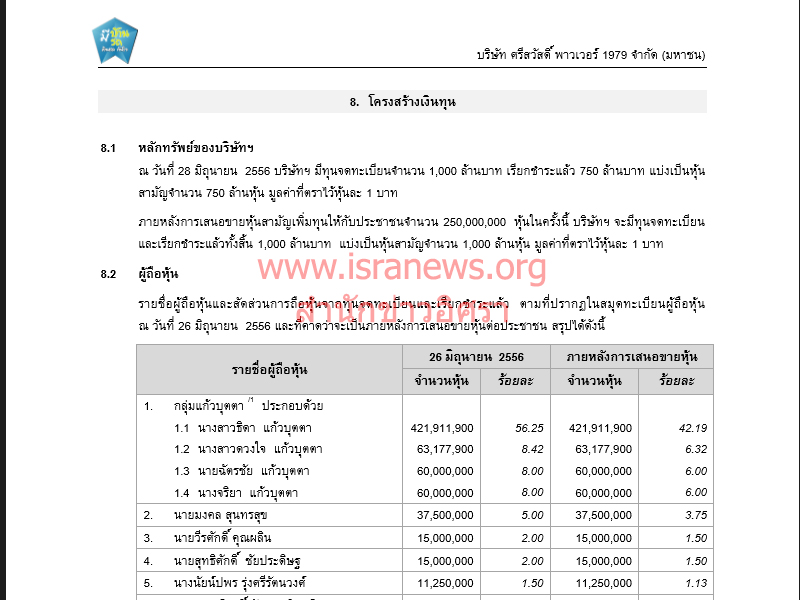 และไม่ปรากฎชื่อนายมงคล สุนทรสุข ร่วมถือหุ้นอีก